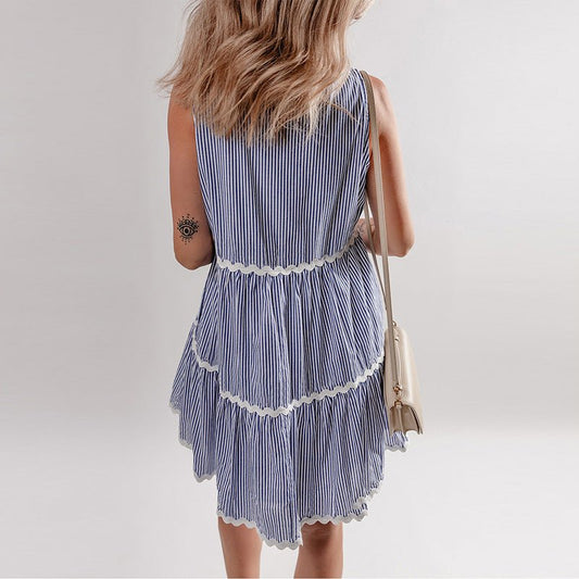Santorini French Cotton And Linen Breathable Strap High Waist Dress