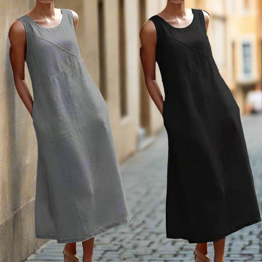 Resilia Round Neck Sleeveless Cotton Linen Loose Dress