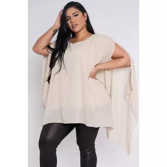 Dahlia PLUS SIZE Beige Sheer Cape Style Batwing Top