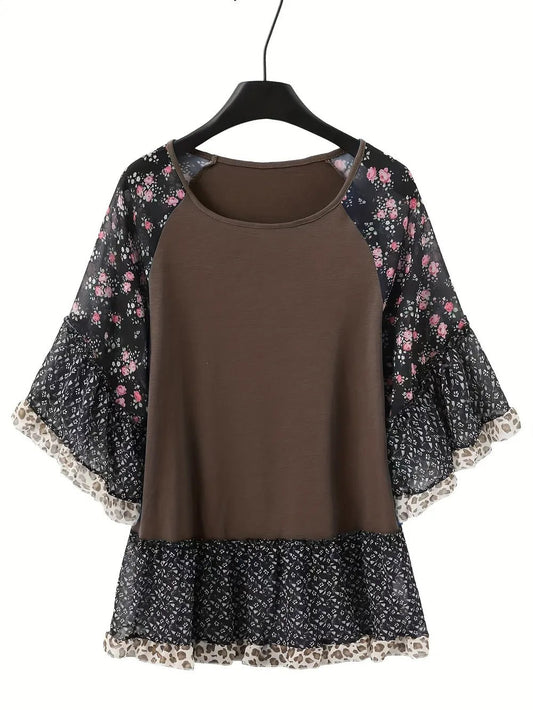 Siskia Frill Printed Round Neck Half Sleeve Cotton Blouse