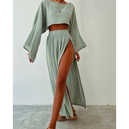 Tofie Short Top Slit Skirt Cotton Linen Two-piece Set